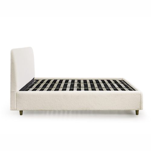 El cabecero está curvado para un confort óptimo y las esquinas de la cama están redondeadas para un acabado más armonioso.
