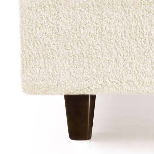 Su tejido de bouclette excepcionalmente denso y de alta calidad y sus 4 pies de huso de madera barnizada en nogal se integrarán fácilmente en la decoración de su dormitorio.